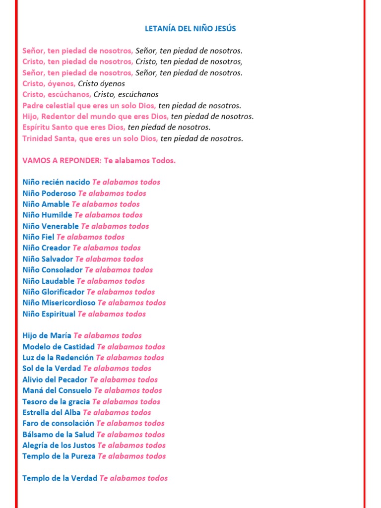 Letanias Al Nino Dios Pdf Cristo Titulo Maria Madre De Jesus
